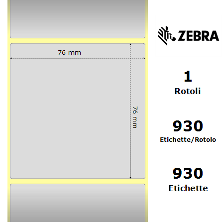 Etichette Zebra a bobina. 1 bobina per confezione. 930 etichette per bobina. Etichette in poliestere con adesivo permanente. Diametro interno: 25 mm. Diametro esterno: 127 mm.